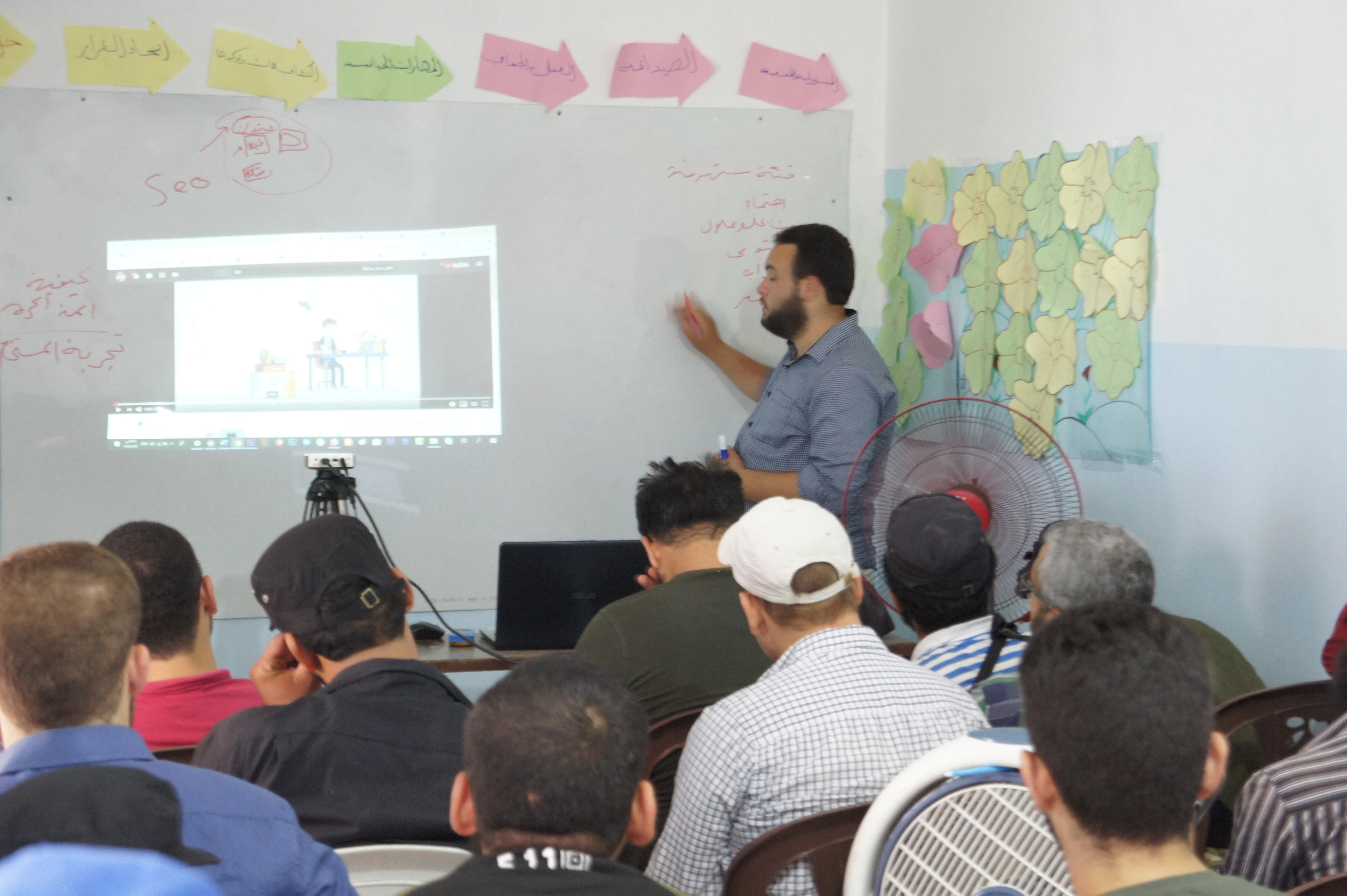 The program included four trainings on remote work targeting university students, focusing on freelance platforms, online project management, and client communication skills. It also included a specialized digital marketing training for Al Yamama Company staff covering social media strategies, paid advertising, SEO fundamentals, content creation, and performance analysis.